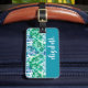 A turquoise, green and white tropical palm tree frond design, this luggage tag is personalized with your first name in a chic handwritten script on the front and your details on the back. The perfect personal gift or accessory for any occasion! MATCHING suitcase and more in our travel collection.
