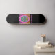 A bold in your face edgy day of the dead skateboard personalized with painted sugar skull in orange, turquoise and hot pink, on a chalkboard background with a quirky font.