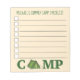 Notepad design features an original CAMP illustration, with a green tent forming the letter A. Perfect for packing for summer camp.