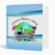 A sunny beach, umbrella and palm trees surrounding a world globe are featured on this summer vacation personalized photo binder.