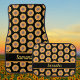 These stylish car mats are decorated with a yellow sunflower pattern on a black background.