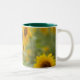 Personalized coffee cup or mug featuring pretty yellow sunflowers.
