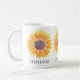 This colorful mug is decorated with yellow watercolor sunflowers.