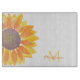 This botanical floral cutting board is decorated with a yellow watercolor sunflower.