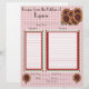 This recipe page matches the binder that I have in my store. The page has a faded dark red and white small checked background, an image of a a bunch of sunflowers in the top right hand corner. The bottom 2 corners have images of single sunflowers. There is a narrow box with a dark red border and leaves and sunflowers around it with a white background to list the recipe ingredients, and a larger matching box to put the directions for the recipe. You can either punch holes along the edge to add it to the binder, or you can purchase clear sleeves and slide your page down inside to keep it neat and clean. The back side is blank so you can add extra notes if you like, or take a favorite photo of the food after it is fixed and mount it to the back. You can also slide the pages back to back in the clear sleeves. The choice is yours. Would make a nice gift.