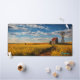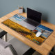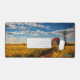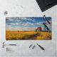 Bring the beauty of this sunflower field in full bloom into your workspace with this exquisite desk mat. Personalize it with a name printed on the lower right corner. This mat features a view of sunflower fields, barn houses and blue skies with a few cotton candy clouds with a high-quality print from a high definition graphic. It provides a smooth and comfortable surface for your work for your laptop, keyboard and mouse. It can also transform your workbench with a stylish and elegant touch. Perfectly suited for all creators, artists, writers and anyone inspired.