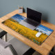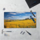 Bring the beauty of this sunflower field in full bloom into your workspace with this exquisite desk mat. Personalize it with a name printed on the lower right corner. This mat features a view of sunflower fields, barn houses and blue skies with a few cotton candy clouds with a high-quality print from a high definition graphic. It provides a smooth and comfortable surface for your work for your laptop, keyboard and mouse. It can also transform your workbench with a stylish and elegant touch. Perfectly suited for all creators, artists, writers and anyone inspired.