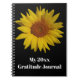 This personalized notebook has a large yellow Sunflower on a black background (customizable) with bold white text that says, "My 20xx Gratitude Journal" on it that can be changed to say whatever you want it to.