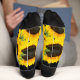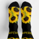 The black background behind this design can be changed to any color you prefer. The font style, size and color can also be changed to suit or removed entirely if you prefer. The very top of these socks and most of the foot display rustic sunflowers. Nice gift idea for your favorite sunflower lover!