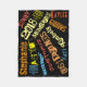Personalized Group sunbeam names. Black Fleece blanket throw Sunshine Name Collage , Yellow, Orange Red, Golden hues,and Vivid Blue. Make someone feel very special with a personalized pillow with any 8 or 9 name template or add photos to customize yourself. Custom Birthday, Congratulations, Vacation or Any Day, Cheery, Happy, fun and festive.