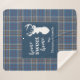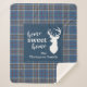 Cute home sweet home Christmas blanket you can easily customize by clicking the "Personalize" button, Featuring deer silhouette and clan Kerr tartan in gray blue checkered pattern.