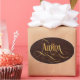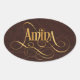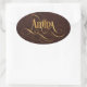 Personalized Swirly Script Amina Gold on Leather Oval Sticker