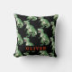 A cool T rex dinosaur boy's room personalized throw pillow. Just add boy's name. Bold green red and black.