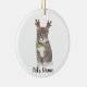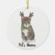 Personalized Tabby Cat (Grey) Antlers & Bow Tie Ceramic Ornament
