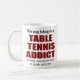 For the table tennis enthusiast who can't get enough of the game, our "This mug belongs to a table tennis addict. Warning - conversation is liable to include table tennis" mug is the perfect addition to their collection. Crafted from high-quality ceramic, this mug is more than just a vessel for your favorite hot beverage—it's a statement piece showcasing your love for the sport. With its humorous and relatable text, it makes a delightful gift for players, coaches, and fans alike. Whether it's for a birthday, tournament celebration, or just a fun surprise, this mug is sure to spark conversations and bring a smile to any table tennis lover's face.