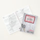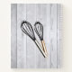 This fun rustic recipe notebook has red and black typography that says "Don't be afraid to take whisks in the Kitchen", bordered in a red and black trim. There are a pair of whisks at the bottom against a rustic, faded wood background. The lower right corner says Recipes and you personalize it right above that with your name.