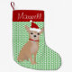 Personalized Tan Chihuahua and Green Polka Dots Small Christmas Stocking