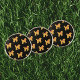 The ball markers arrived as promised however the quality was not as pictured. Both the black and blue markers have bubbles and what appears to be glue on the blue marker. Now that I have them in hand I feel like this is a printed piece of paper snapped between the marker pieces with adhesive. The examples look as if it is a solid image.