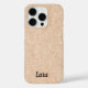Personalized tan iPhone 16 Pro case with a custom name in bold black text, blending style and individuality.