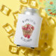 Modern stylish CAN COOLER for your favorite teacher. This simple design shows a basket of apples with curved text at the top, which says WE APPRECIATE YOU and a placeholder name. Both are CUSTOMIZABLE, so you can change the greeting and the name at the bottom. On the reverse is