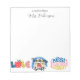 Brighten every message with this personalized teacher notepad! Featuring the phrase "A Note From Mrs. Robinson" (customizable with any name), this charming notepad includes adorable, colorful teacher-themed graphics at the bottom: