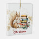Celebrate the invaluable commitment of teachers with our Personalized Teacher Christmas Ceramic Ornament. This cute and festive design captures the essence of the holiday season, featuring a delightful squirrel sipping cocoa and a stack of books. To make it truly special, we offer the option to have the teacher's name monogrammed on the ornament. This thoughtful and charming gift is the perfect way to express gratitude to your son or daughter's school teacher during the holiday season. Show appreciation and spread holiday cheer with this wonderful personalized ornament. Gold, green and red colors.