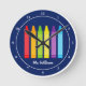Personalized Teacher Cute Crayon Blue Classroom Round Clock