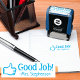 Positive thumbs up hand icon with a rewarding message "good job" and teacher's personalized name is a fun way to award outstanding students for a job well done! Use this awesome custom personalized pocket stamp for a teacher, sports or team recognition for classroom assignments, grading papers, homework, projects, tests, quizzes, notebook journals or anything!