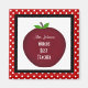 Red Apple Magnet, trimmed in black with white polka dots. Personalize by changing text and add teachers name.