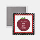 Red Apple Magnet, trimmed in black with white polka dots. Personalize by changing text and add teachers name.