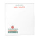 White personalized note pad with an image of stack of books and an apple on top on the bottom corner. You can personalized this with your teacher name or personalized with your own name. Great gift for teachers or any one in the education field.