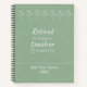 Modern typography with soft, calm sage green background with white floral patterns with the saying retired but forever a teacher at heart perfect gag retirement journal gift for a teacher suitable for new year, teacher appreciation day and retirement party. You can write your personalized custom name and retired year.