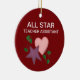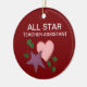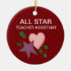 Add your teacher's name or special message to a teacher on this fully customizable ornament. Makes a great Christmas gift, teacher appreciation gift, or a end of the year gift for a special teacher assistant. Design has a star and heart in beautiful Christmas colors.
