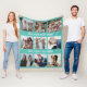 Personalized Teal 9 Photo Collage Fleece Blanket