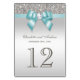 Personalized Teal Blue Faux Bow Silver Sequins Table Number
