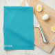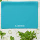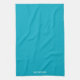Personalized Teal Blue Plain Solid White Script Kitchen Towel