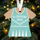 Celebrate your cheerleader's spirit with this personalized teal cheerleader uniform ornament. Perfect for commemorating a special season, team, or individual achievement. Customize it with a name and year to create a unique keepsake.