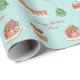All aboard the gingerbread house train, Merry Christmas! This cute light teal Christmas wrapping paper features modern script font in a shade of gumdrop red. The main feature is the hand-painted watercolor Christmas treats. It is perfect for the holidays