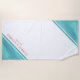 In shades of teal with coral and white, this beach towel is simple and modern and a lovely way to remember your special day.