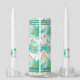 This personalized unity candle set features a graceful soft teal floral pattern.