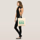 Custom tote bag featuring a name for you to personalize in teal and the word "BAG" in a bold font.