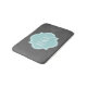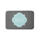 Classy gray and teal blue quatrefoil monogram bath mat. Chic bathroom home decor. Grey Bracket shape monogrammed design. Stylish typography for personalized name initial letters. Cute wedding or birthday gift idea for newly weds, bride and groom, husband and wife, engaged couple etc. Pretty interior decoration for elegant bath room. Available in small, medium and large big size. Customizable background color.
