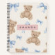 Personalized Teddy Bear & Blue Bow Pattern Notebook