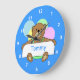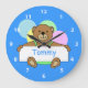 Personalized clocks for children's rooms and nurseries. Cool teddy bear design is customized with child's name.