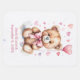 Cute adorable whimsical teddy bear with pink bow, hearts and balloon on this baby blanket for the new baby girl. Personalize it with her name and birthday and any other birth stats you want. Design is on both sides of the blanket.