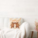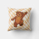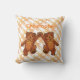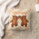 Two brown teddy bears wearing orange bows showing of personalized name with a background of orange twirls. The back of the pillow stars one large teddy raising is paw to say hello. This colorful orange and brown design will add a special touch to a little boy’s room. Add custom name using the template provided. Original design by Anura Design Studio.