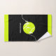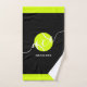 Personalized black and bright yellow tennis towel with a simple tennis ball "ace" design and custom name or text in a feminine girly and modern pretty script font monogram. Any girls or womens tennis player would appreciate the elegant look on this modern and minimal useful tennis themed gift.