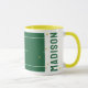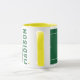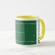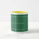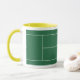 Creative tennis mug featuring tennis balls on green tennis court. To personalize edit text to add name of your favorite tennis player, coach or sports lover.