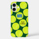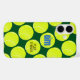 A pattern of yellow tennis balls with custom initials for a tennis-player