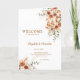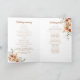 Immerse in the warmth of our bright terracotta bohemian fall pampas floral wedding folded program. This unique design, adorned with autumn flowers, green branches, and white and brown blooms, encapsulates the essence of a fall wedding. The terracotta bohemian boho floral theme sets the tone for a memorable wedding ceremony and party. Our folded program also includes a heartfelt welcome sign and thank you messages from the bride and groom to their parents, friends, and family, as well as a touching in-memory-of message.